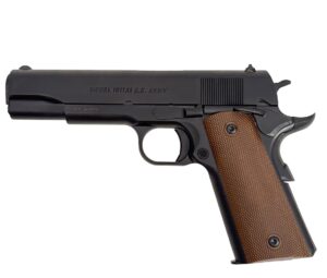 GForce 1911 A1 US ARMY 45ACP 5″ Barrel 1 – 7 Round Magazine, Black Nitride Frame and Slide, Ambi Thumb Safety, Extended Grip Safety, Brown Grips.