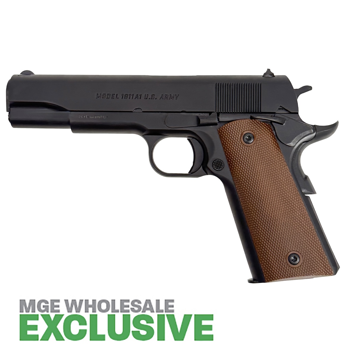 GForce 1911 A1 US ARMY 45ACP 5″ Barrel 1 – 7 Round Magazine, Black Nitride Frame and Slide, Ambi Thumb Safety, Extended Grip Safety, Brown Grips.